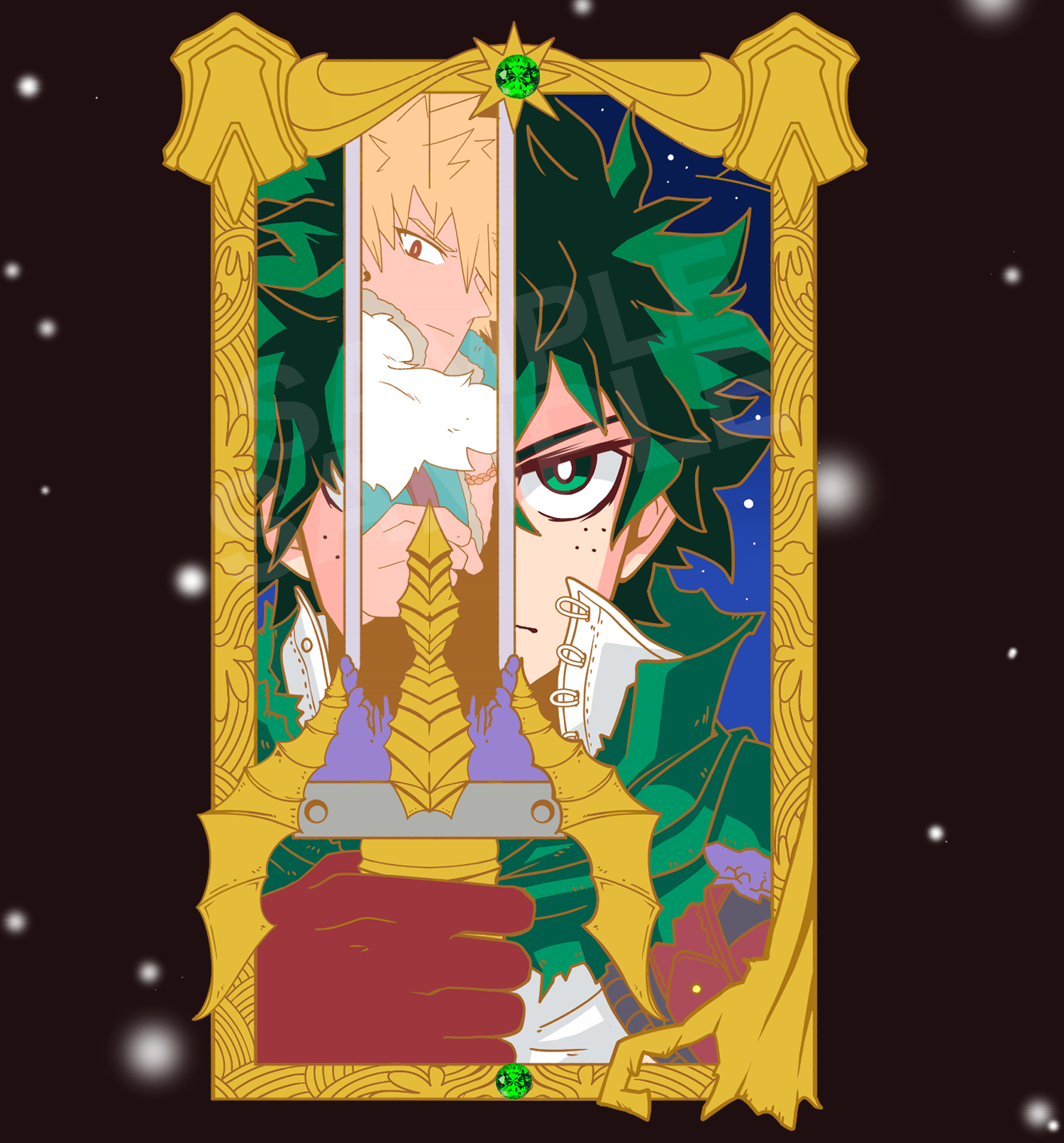 • Screenprint, Glitter, orange gem